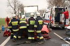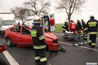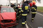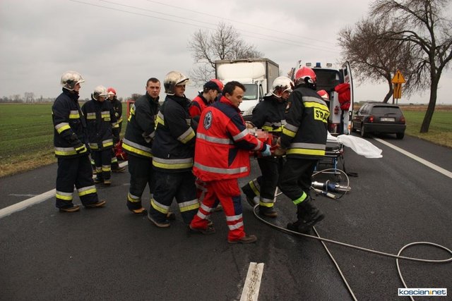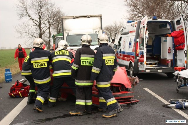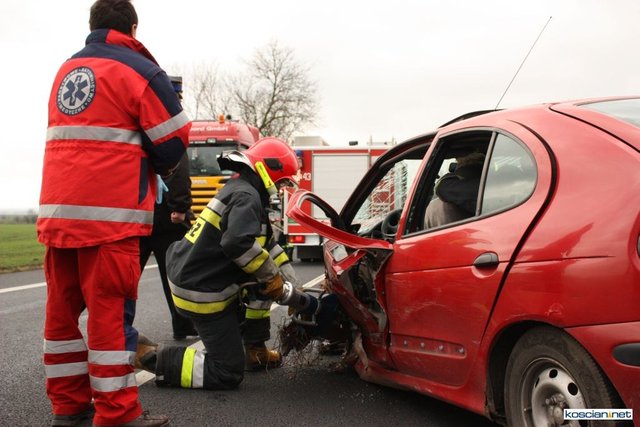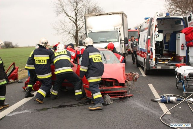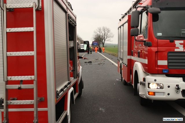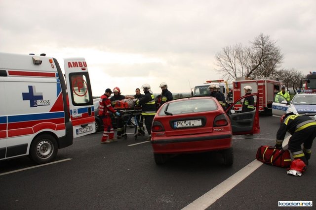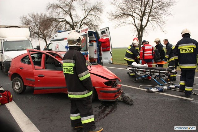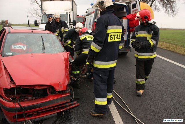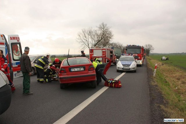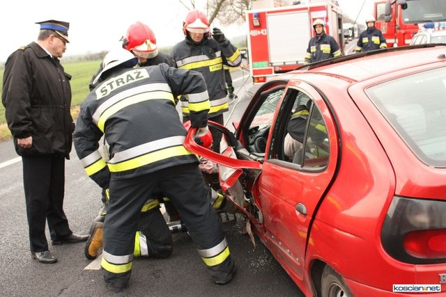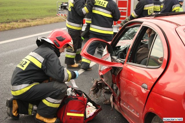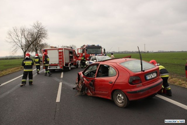 Służby otrzymały zgłoszenie o zderzeniu czołowym dlatego na miejsce skierowano większe siły. Okazało się, że niegroźne obrażenia odniósł jedynie 74-letni mieszkaniec powiatu kościańskiego kierujący samochodem renault megane. Strażacy wydobyli go z rozbitego auta i przekazali ratownikom medycznym.