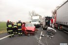 Prawdopodobną przyczyną kolizji był źle wykonany przez kierowcę megane manewr wyprzedzania. Renault zderzył się z naczepą samochodu ciężarowego po czym uderzył w jadącą z przeciwnego kierunku ciężarówkę. Czwartym pojazdem, który ucierpiał w kolizji była osobowa toyota, której kierowca chcąc uniknąć zderzenia zjechał na pobocze.