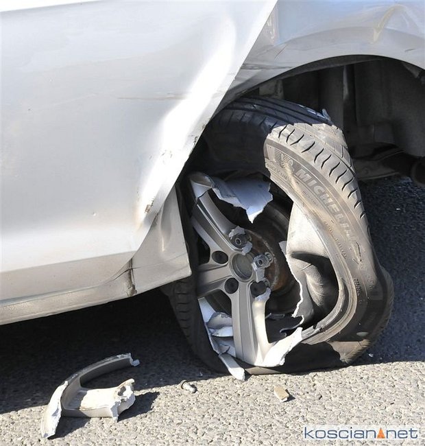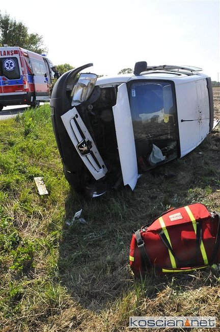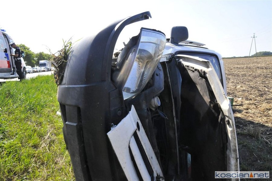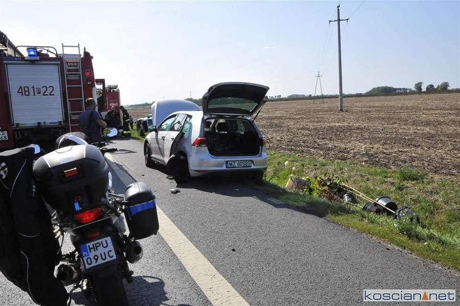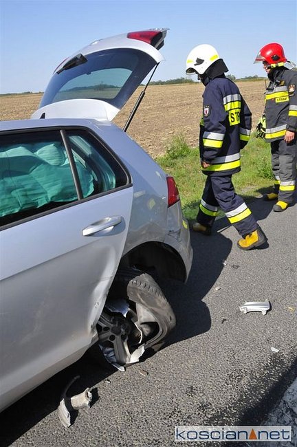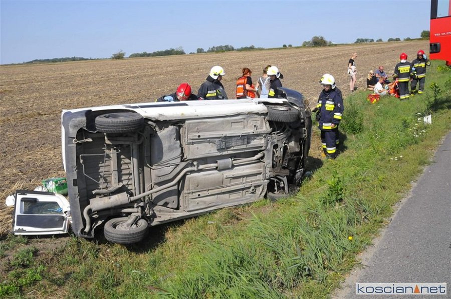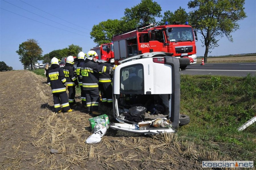 Do zdarzenia doszło w sobotę, 24 sierpnia, około godziny 14.45, na krajowej piątce pomiędzy Poninem a Czaczem. Kierująca peugeotem partnerem, 29-letnia mieszkanka gminy Śmigiel, chcąc przepuścić wyprzedzające je auto zjechała na pobocze wprost na stojącego na poboczu volkwsagena golfa. Po zderzeniu peugeot wjechał do rowu i przewrócił się na bok. Kierująca ani podróżujące z nią jedenastoletnie dziecko nie odnieśli poważniejszych obrażeń.
