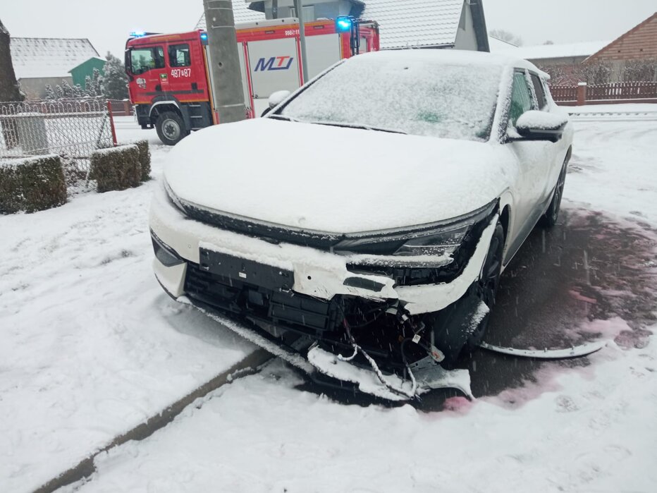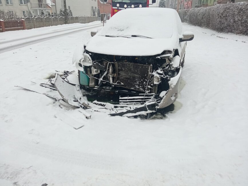 W poniedziałek rano warunki jazdy utrudniał zalegający na drogach śnieg. Na szczęście większość kierujących dostosowała technikę jazdy do zimowych warunków. Miał z tym kłopot 55-letni kierowca z Leszna, który doprowadził do kolizji na ulicy Polnej w Czaczu.
