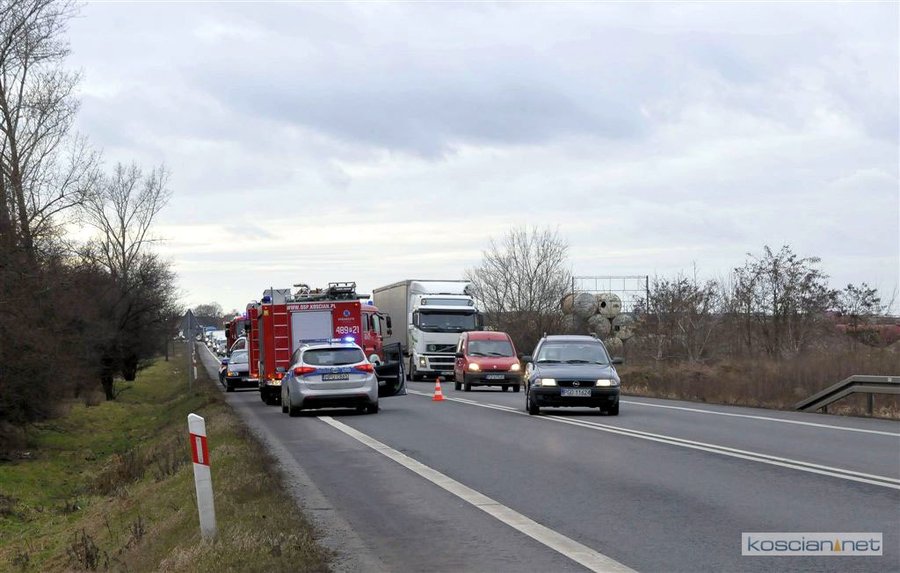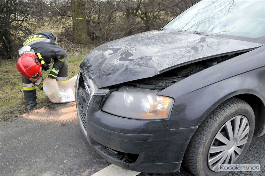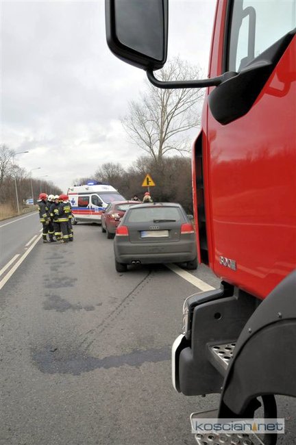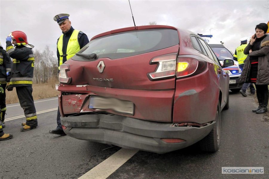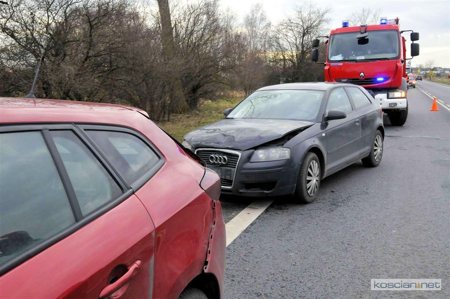 Do kolizji doszło o godzinie 14.25 w okolicy zjazdu z drogi krajowej numer 5 do Kościana na wysokości Zajazdu u Dudziarza. Kierująca samochodem audi, 29-letnia mieszkanka Złotowa, nie zachowała bezpiecznej odległości od poprzedzającego ją pojazdu i uderzyła w tył renaulta megane prowadzonego przez 42-letnią mieszkankę powiatu poznańskiego. W wyniku uderzenia renault przemieścił się do przodu i uderzył w tył volkswagena polo kierowanego przez 52-letnią leszczyniankę. Nikt z uczestników kolizji nie ucierpiał. Sprawczyni została ukarana mandatem.
