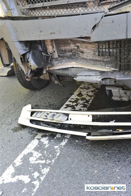Do zdarzenia doszło około godziny 14. Kierowca iveco nie zahamował na czas i uderzył w poprzedzającego go citroena berlingo wpychając go jednocześnie na tył hamującej ciężarówki. Uczestnicy kolizji wyszli z niej bez szwanku.