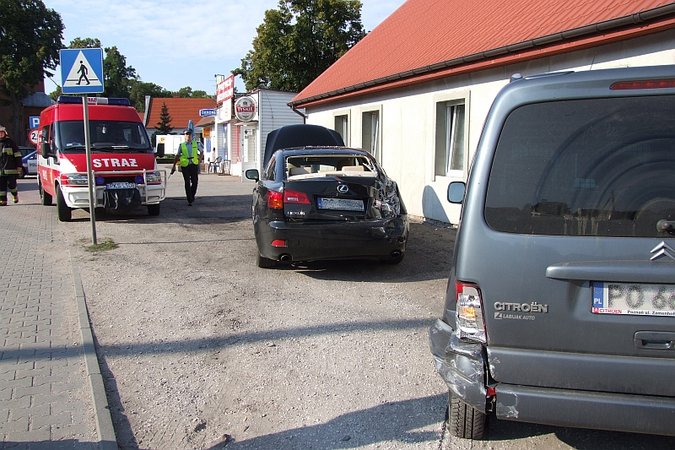 Samochód ciężarowy Daf uderzył w hamującego przed nim Leksusa, a ten w jadącego przed nim Citroena Berlingo.Droga była przejezdna, ruch odbywał się wahadłowo kierowany przez policję a miejsce zdarzenia zabezpieczała Ochotnicza Straż Pożarna z Czempinia, która po zepchnięciu pojazdów na chodniki uprzątnęła drogę.