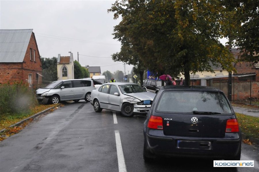 Trzy pojazdy uczestniczyły w kolizji, do której doszło w Nacławiu o godzinie 16.10. Kierujący seatem toledo, 35-letni mieszkaniec gminy Kościan, skręcając na posesję doprowadził do zderzenia z renaultem espace i volkswagenem golfem. Sprawcę ukarano mandatem w wysokości 500 zł.