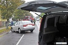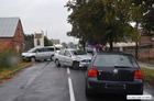 Kierowca skręcający na posesję doprowadził do zderzenia z dwoma samochodami.