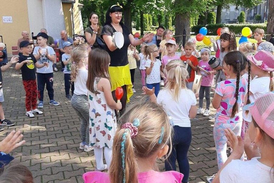 Plac przy Domu Pomocy Społecznej w Jarogniewicach zamienił się w kolorowa krainę, którą opanowały przedszkolaki.