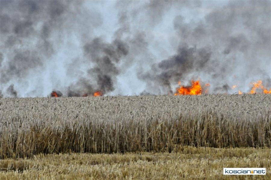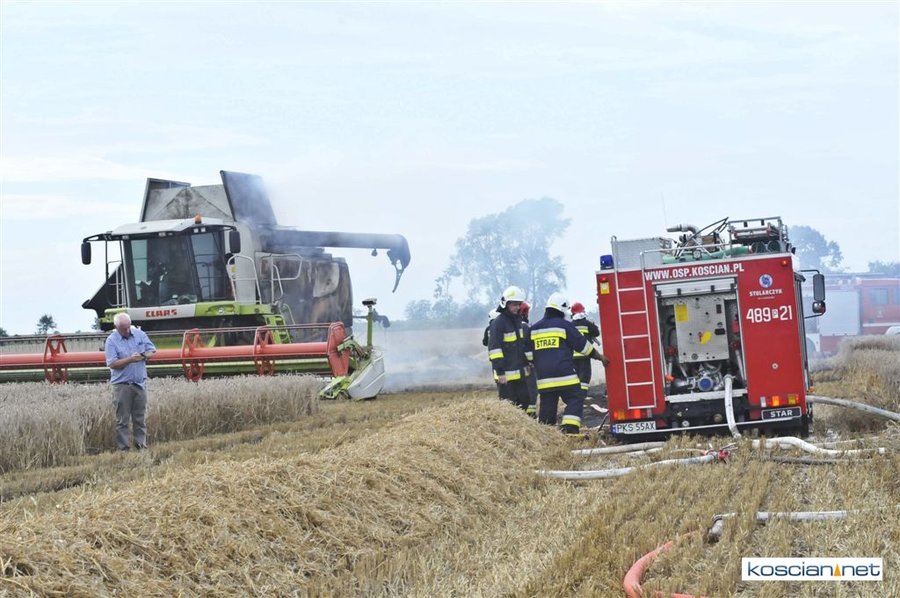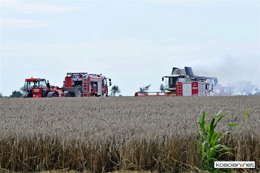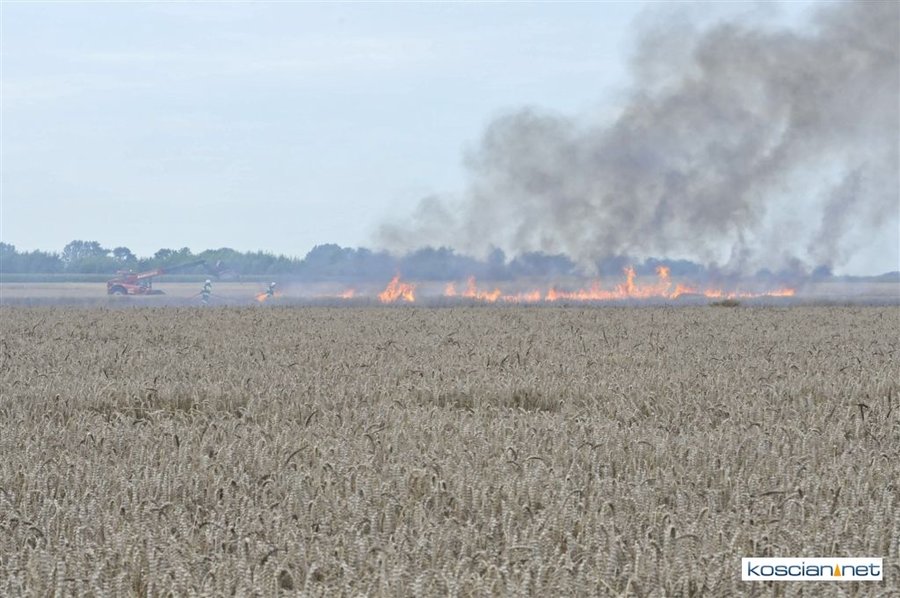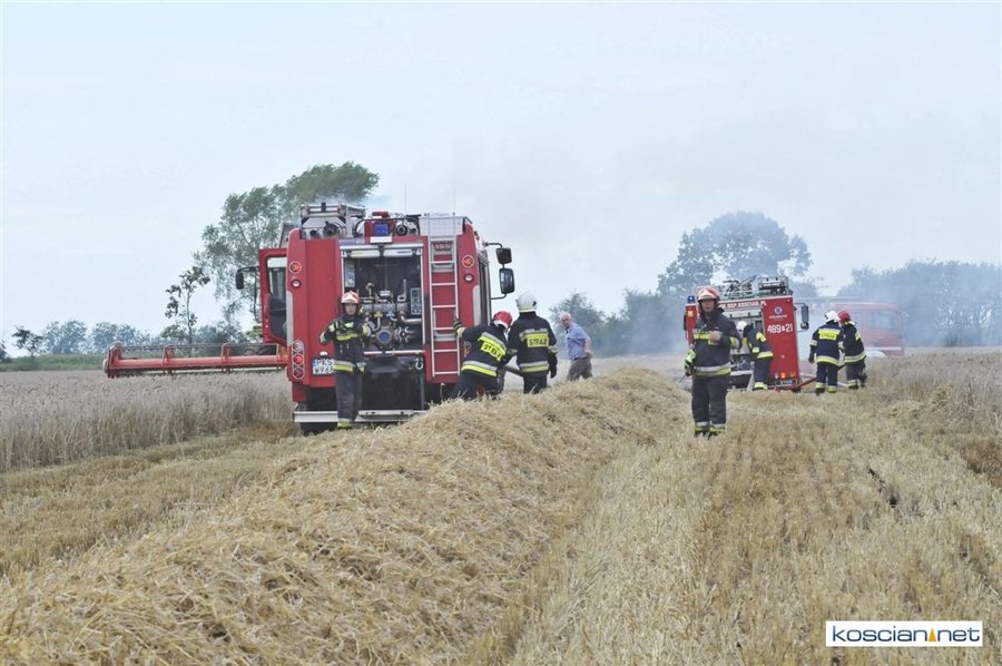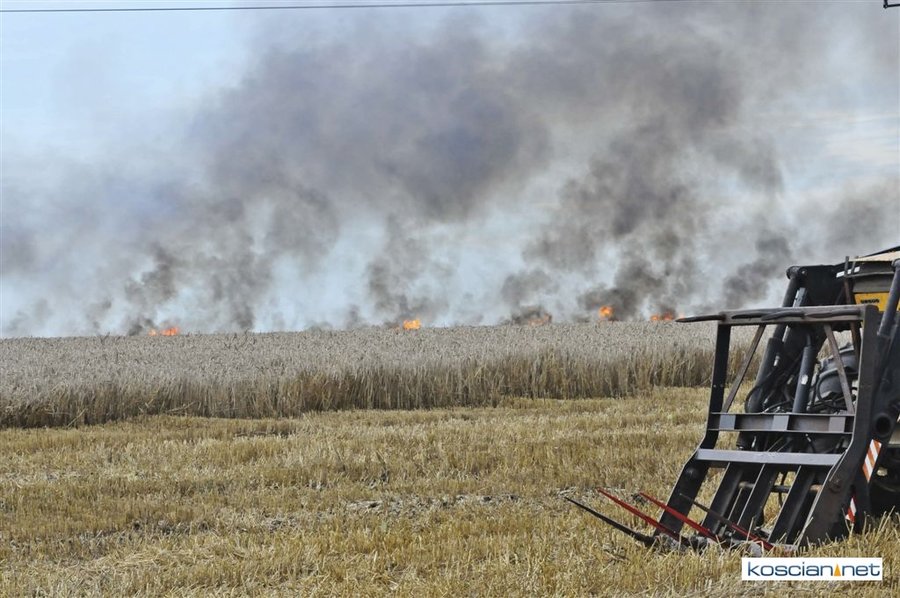 W czwartkowe popołudnie, 3 sierpnia, o godz. 16.39 Stanowisko Kierowania Komendanta Powiatowego PSP w Kościanie otrzymało informację, że na polach w okolicach miejscowości Ponin pali się kombajn zbożowy, słoma oraz zboże na pniu.