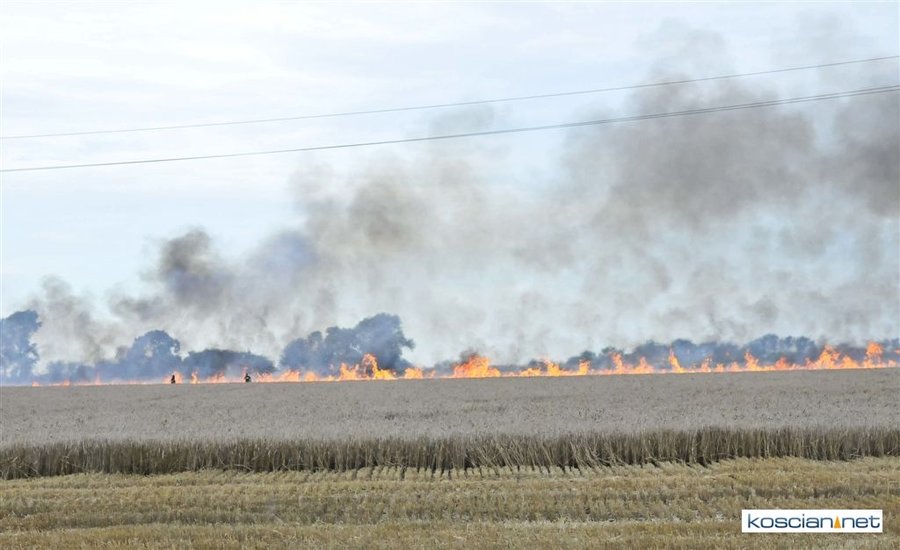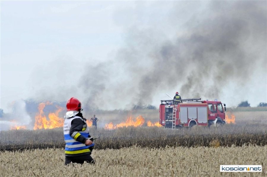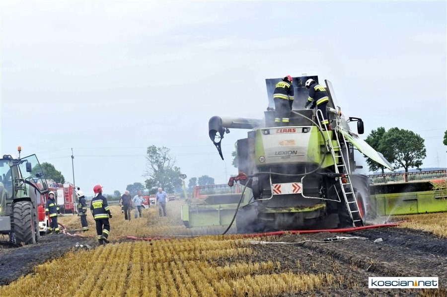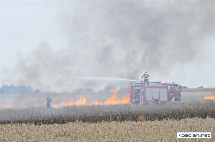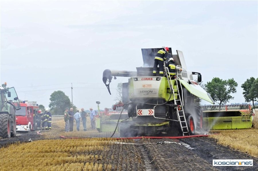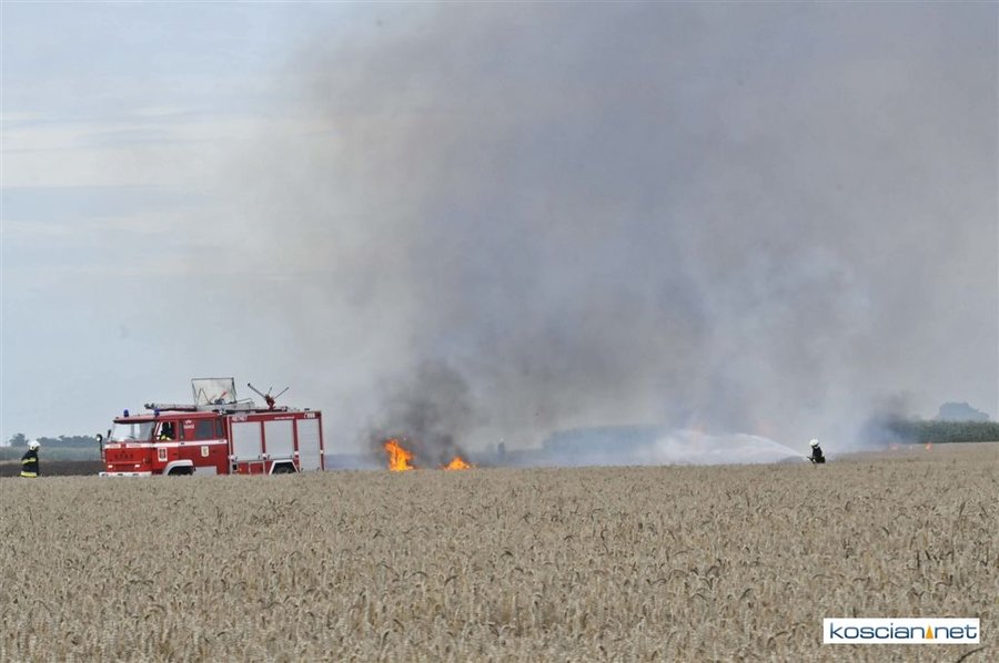 W czwartkowe popołudnie, 3 sierpnia, o godz. 16.39 Stanowisko Kierowania Komendanta Powiatowego PSP w Kościanie otrzymało informację, że na polach w okolicach miejscowości Ponin pali się kombajn zbożowy, słoma oraz zboże na pniu.
