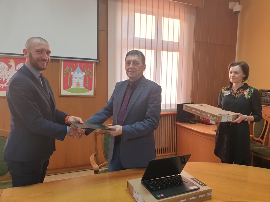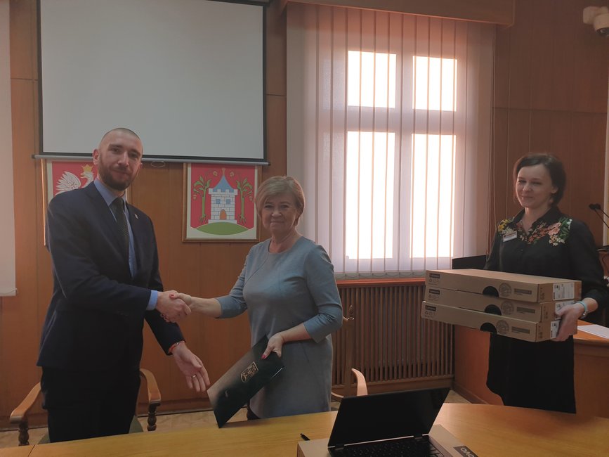 W środę, 18 grudnia, w śmigielskim magistracie nastąpiło uroczyste przekazanie sprzętu komputerowego dla szkół podstawowych zakupionego w ramach projektu „Podniesienie kompetencji cyfrowych mieszkańców województw: wielkopolskiego i zachodniopomorskiego”.