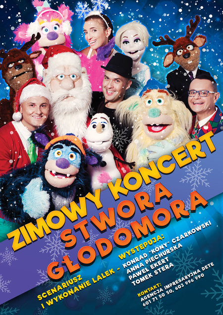 KONCERT STWORA GŁODOMORA wykonywany przez opolski Tercet 4-MATION - laureatów programu „Szansa na sukces” i uczestników wielu projektów muzycznych, to unikalne połączenie show lalkarskiego, programu muzycznego i dydaktycznego. Na scenie zaprezentują się lalki Konrada Kony Czarkowskiego - twórcy lalek do hitowego filmu „Planeta singli” oraz uczestnika polskiej i brytyjskiej wersji programu „Mam talent”.