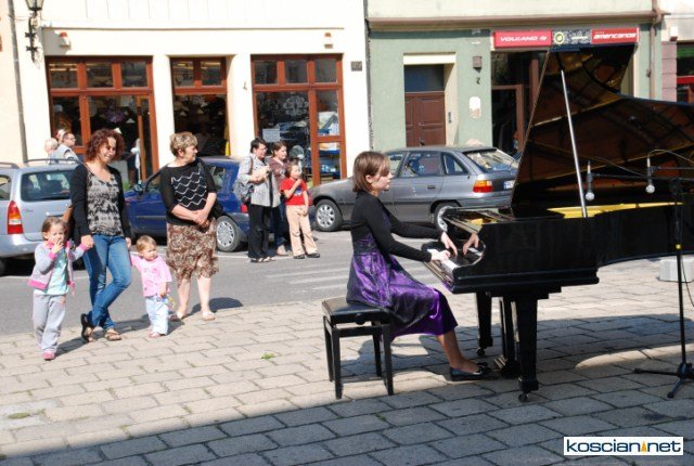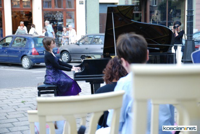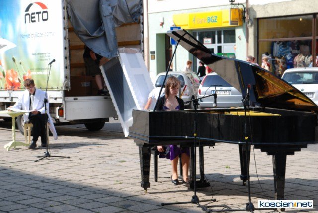 W skąpanym w słońcu kościańskim rynku na fortepianie zagrała Anna Szyc, absolwentka poznańskiej Akademii Muzycznej w klasie prof. Alicji Kledzik, tegoroczna dyplomantka, stypendystka ministra kultury i dziedzictwa narodowego za szczególne osiągnięcia artystyczne, która wkrótce rozpocznie studia pianistycznie w Zurichu.