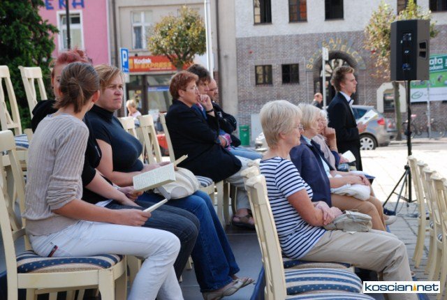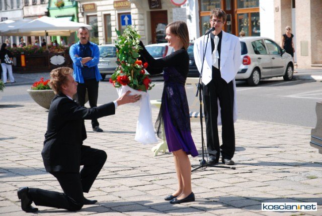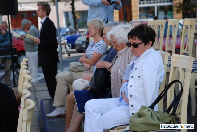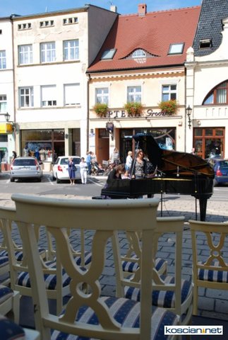 Happening pod tytułem "Koncert" zorganizował w środowe przedpołudnie Kościański Ośrodek Kultury. Przed Ratuszem ustawiono fortepian i podest z trzema rzędami krzeseł dla słuchaczy wypożyczonych specjalnie na ten dzień z racockiego pałacu.