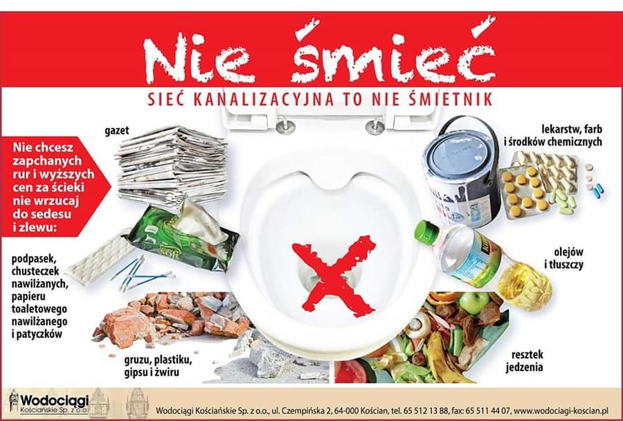 To, że tego typu odpady będą teraz rozdrabniane maszynowo nie oznacza, że mogą trafiać do kanalizacji.