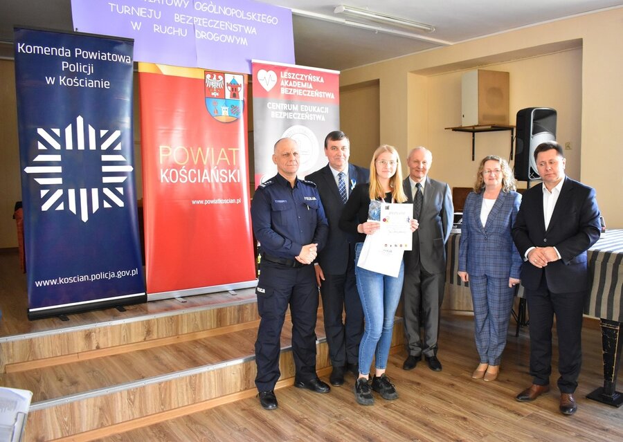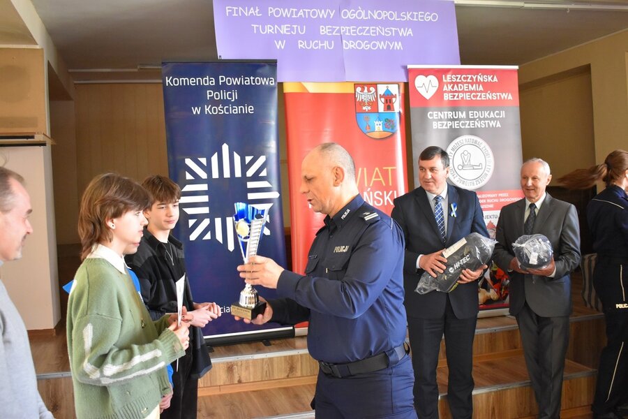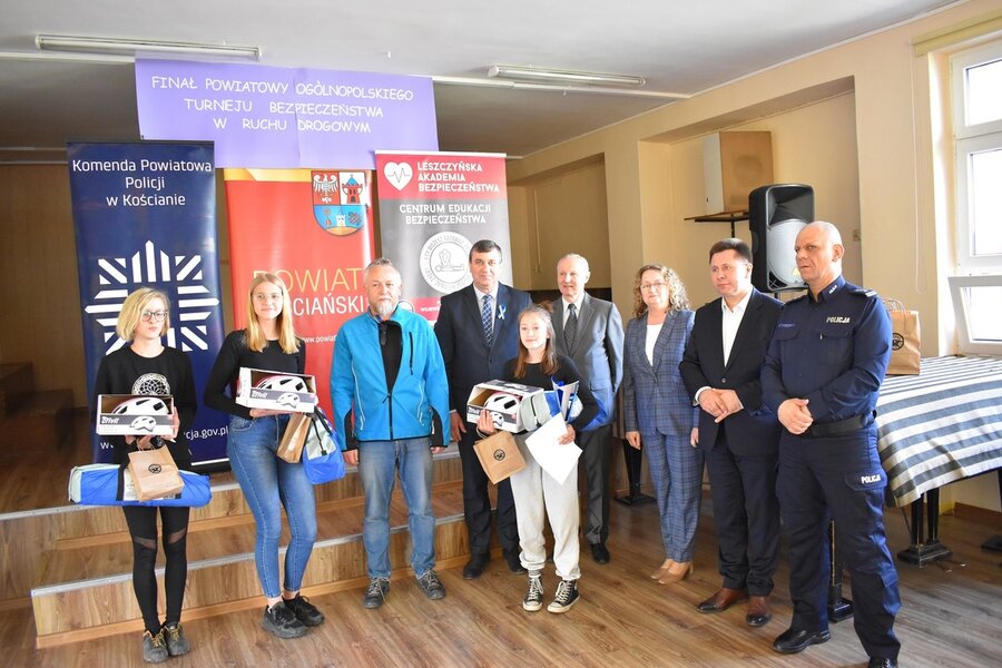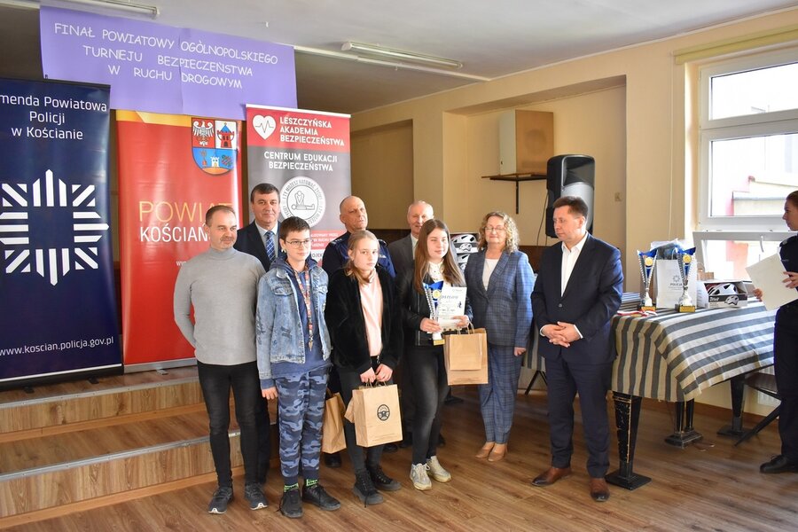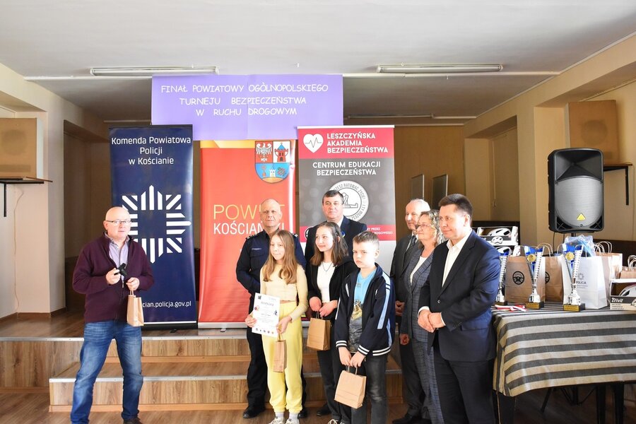 Laureatom konkursu nagrody i upominki wręczał Komendant Powiatowy Policji insp. Andrzej Zakrzewski, zastępca dyrektora Wojewódzkiego Ośrodka Ruchu Drogowego w Lesznie Wiktor Spiżewski, burmistrz Kościana Piotr Ruszkiewicz, zastępca wójta Gminy Kościan Mirosław Duda oraz dyrektor SP 3 w Kościanie Izabela Korzeniowska.