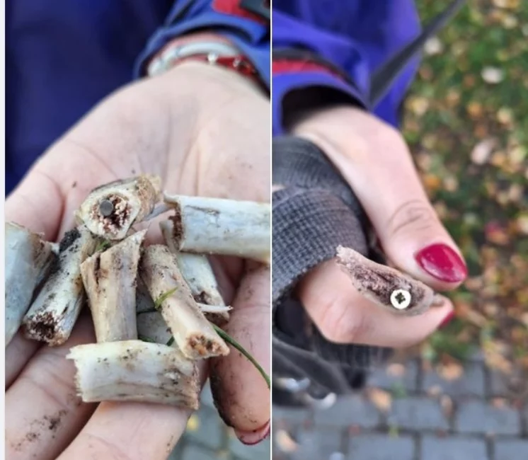 We wtorek, 15 października, na osiedlu Piastowskim w Kościanie, jedna z mieszkanek znalazła kości naszpikowane gwoździami i wkrętami.