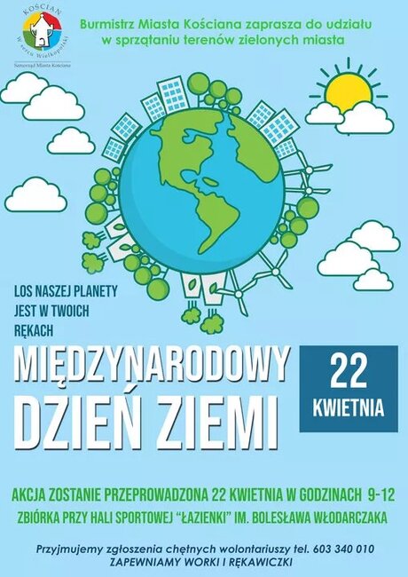 W najbliższą sobotę, 22 kwietnia, obchodzić będziemy Międzynarodowy Dzień Ziemi. Jego celem jest promowanie ochrony środowiska, rozszerzenie świadomości ekologicznej i życia w zgodzie z naturą. Z tej okazji samorządy miasta i gminy Kościan, po raz kolejny organizują akcje sprzątania terenów zielonych.