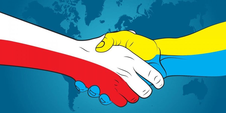 Zapraszamy z polskimi, ukraińskimi i europejskimi flagami.