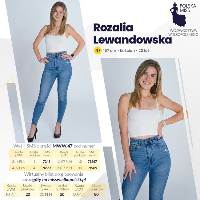 Konkurs Miss Województwa Wielkopolskiego jest równocześnie eliminacją ogólnopolskiego Konkursu Piękna Polska Miss. O awans do finału zabiegają dwie kościanianki: Rozalia Lewandowska i Otylia Józefowska. Głosowanie trwa do soboty, 3 września, do godziny 20. Szczegóły na grafikach i stronach konkursu.