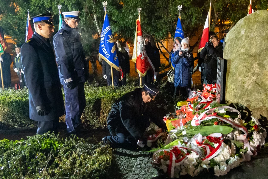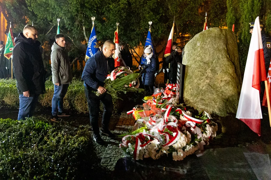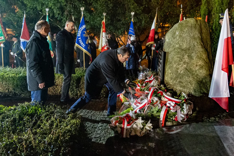 Uroczystość zakończyło składanie wieńców pod pomnikiem Powstańców Wielkopolskich.