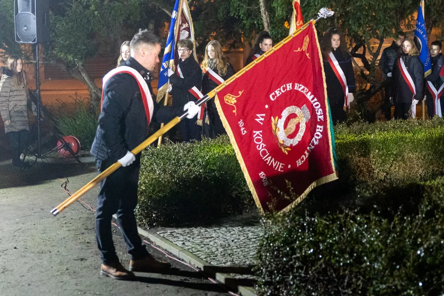 O godzinie 17. rozpoczęły się uroczystości przy pomniku Powstańców Wielkopolskich na Placu Paderewskiego. Uczestniczyli w niej liczni mieszkańcy miasta i powiatu, senator Wojciech Ziemniak, radni powiatowi, miejscy i gminny, kościańscy starostowie, burmistrz Kościana z zastępcą, wójt gminy Kościan, delegacje i poczty sztandarowe szkół, organizacji i instytucji.