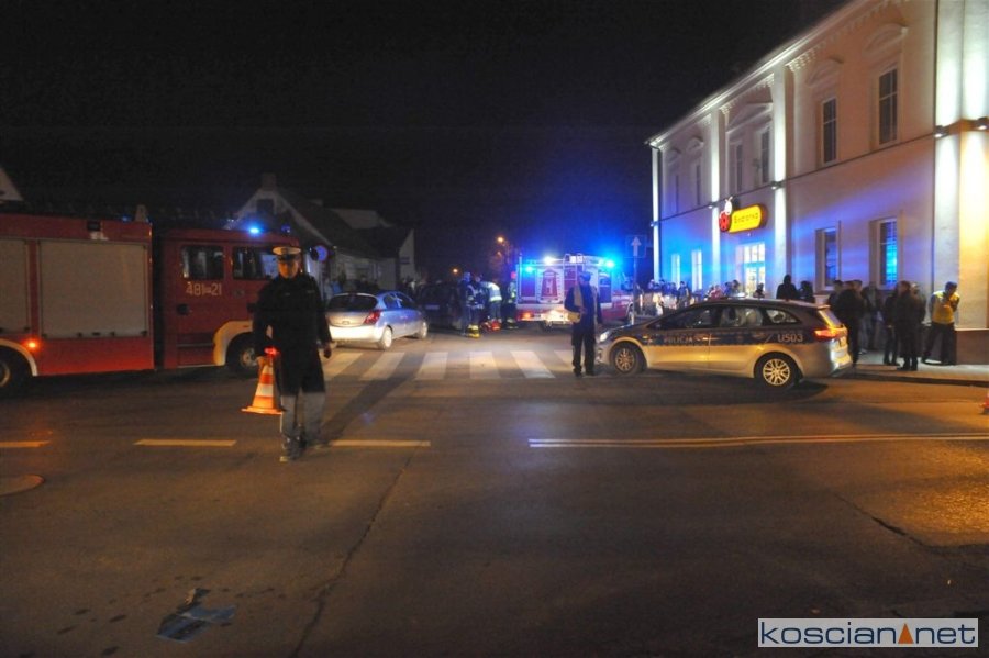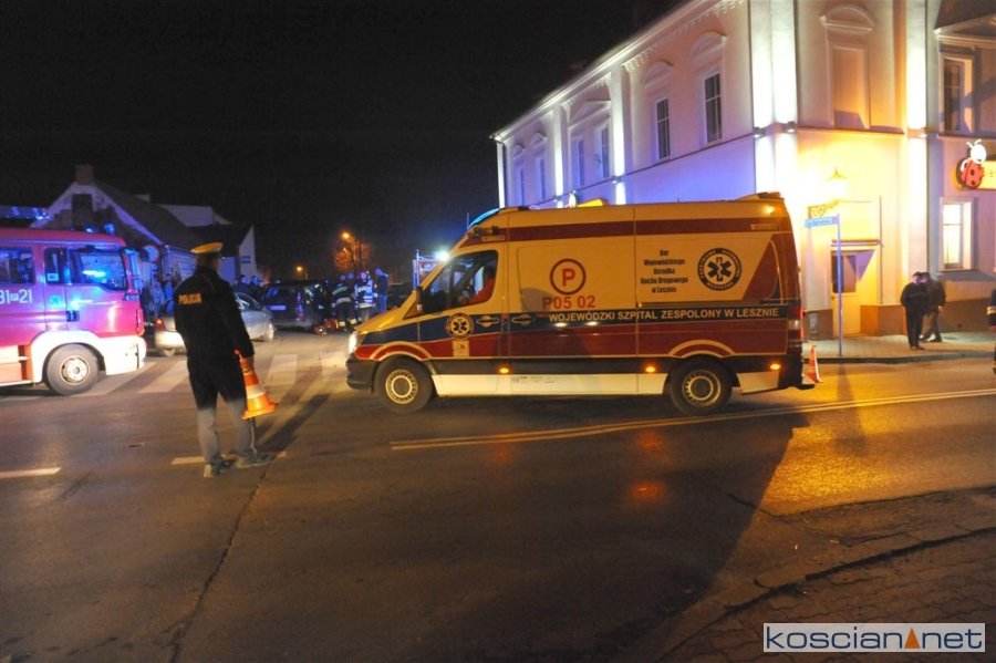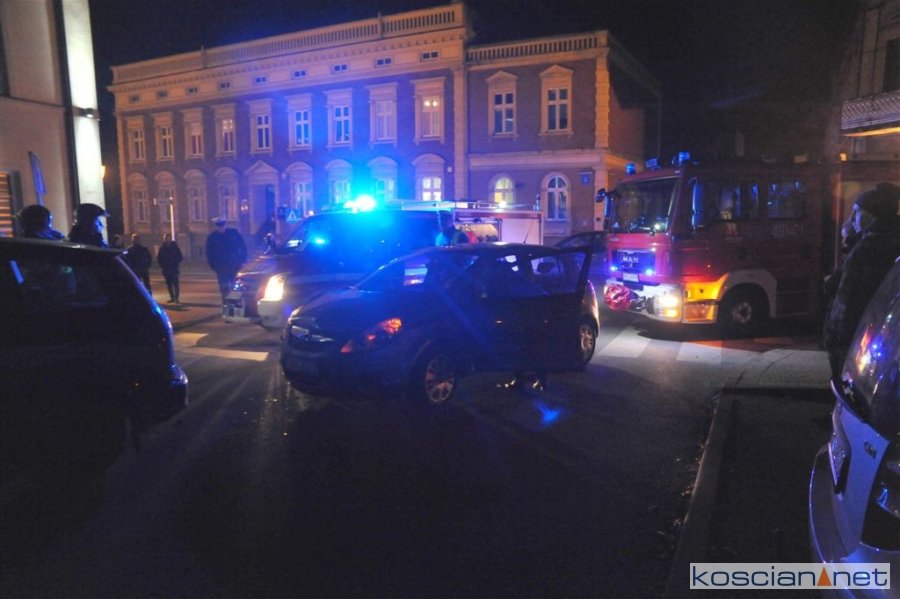 Do zdarzenia doszło kilka minut po godzinie osiemnastej. Jak wynika ze wstępnych ustaleń, opel corsa, prowadzony przez 47-letnią mieszkankę gminy Śmigiel, skręcający z ul. Mickiewicza w ul. Ogrodową uderzył w forda c-max, którym kierowała 46-letnia mieszkanka gminy Śmigiel. Do szpitala na badania przewieziono pasażerkę forda. Policja ustala okoliczności i przebieg zdarzenia.