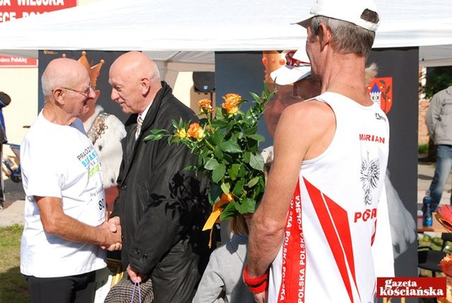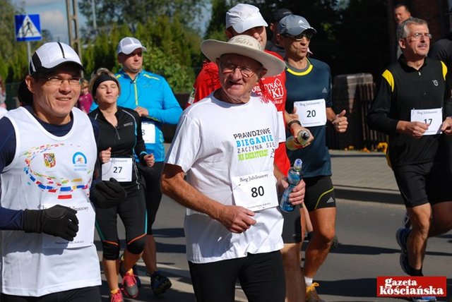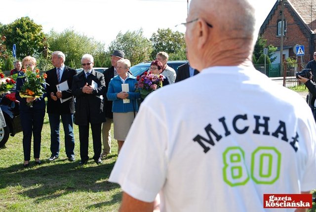 Blisko 60 osób stanęło na starcie jubileuszowego biegu z okazji 80-lecia urodzin oraz 20-lecia biegania Michała Szkudlarka z Przysieki Polskiej. Były życzenia, upominki i urodzinowy tort.