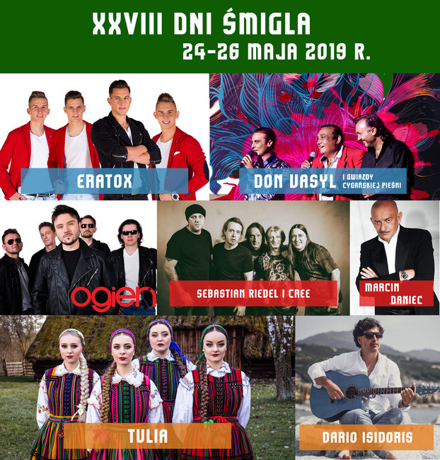 W ostatni weekend maja w Śmiglu wystąpią zespoły: Tulia, Cree, Ogień i Don Vasyl.