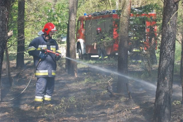 1 maja w lesie pomiędzy Nowym Dębcem a Gryżną zapaliła się – prawdopodobnie wskutek podpalenia – ściółka leśna. Ratownicy z Racotu i Gryżyny wspierani przez zawodową straż z Kościana szybko opanowali pożar.Fot. Bogdan Ludowicz