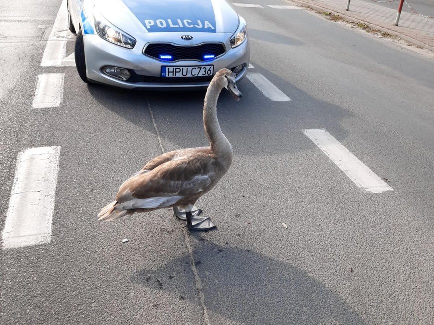 - Policjanci starali się przeprowadzić łabędzia na pobliskie łąki. Ptak po krótkim spacerze wzbił się w powietrze i odleciał o własnych siłach. Mamy nadzieję, że umiejętności latania wystarczy na wiele lotów – mówi rzecznik policji.