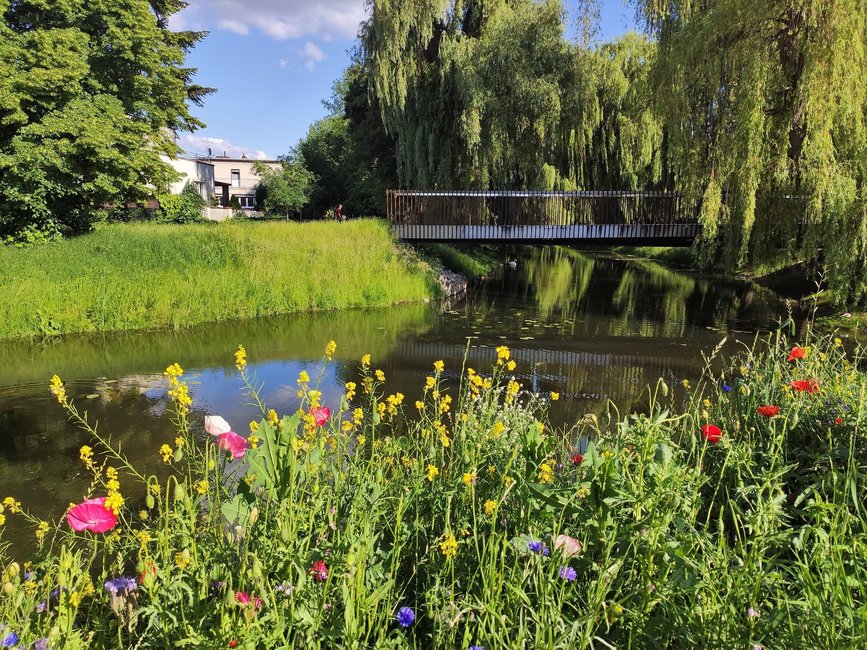 Na kościańskim bulwarze pojawiły się domki dla owadów, budki lęgowe i karmniki dla ptaków. Zakwitła też łąka kwietna. Na razie tylko w okolicach mostków. Docelowo takie widoki będzie można podziwiać na całych Wałach Żegockiego.