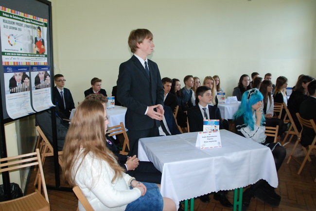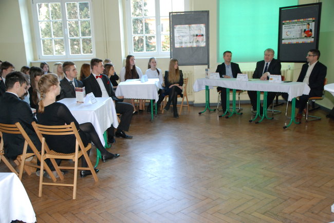 W spotkaniu uczestniczyli przedstawiciele siedmiu klas pierwszych, które mają zajęcia z przedsiębiorczości. Z młodzieżą spotkali się: Maciej Bartkowiak ze Studia Fabryka projektującego strony internetowe, Jerzy Szyguła z biura rachunkowego i Przemysław Gil z przetwórni owocowo-warzywnej. Goście dzielili się z uczniami wiedzą i doświadczeniem zawodowym. Mówili na temat wad i zalet prowadzenia działalności gospodarczej, rozwiązywania problemów związanych z zakładaniem i prowadzeniem własnej firmy. Cała trójka odpowiadała na pytania młodzieży.
