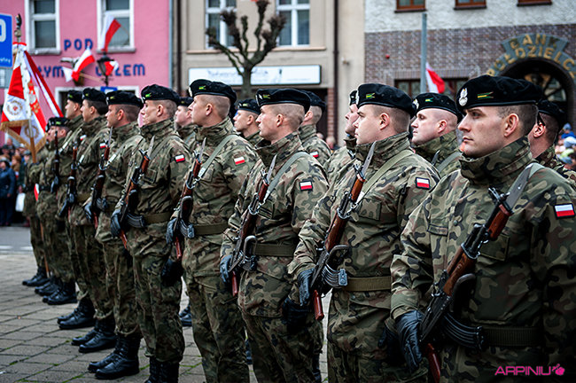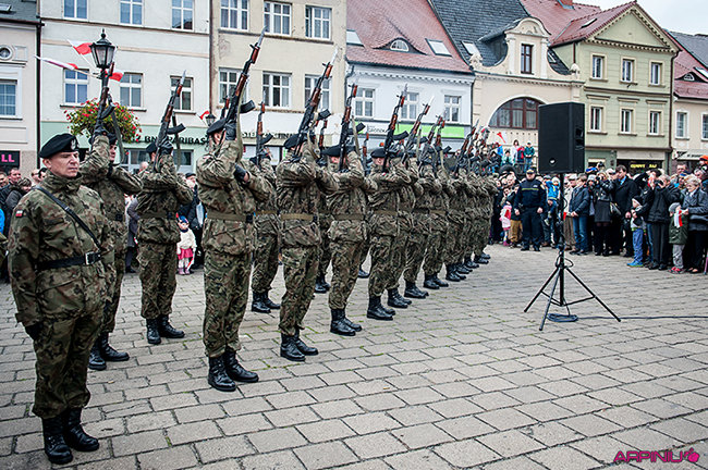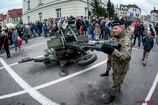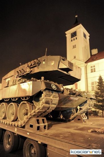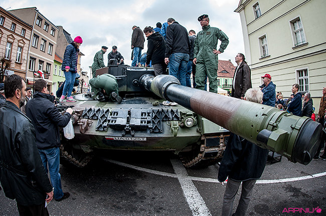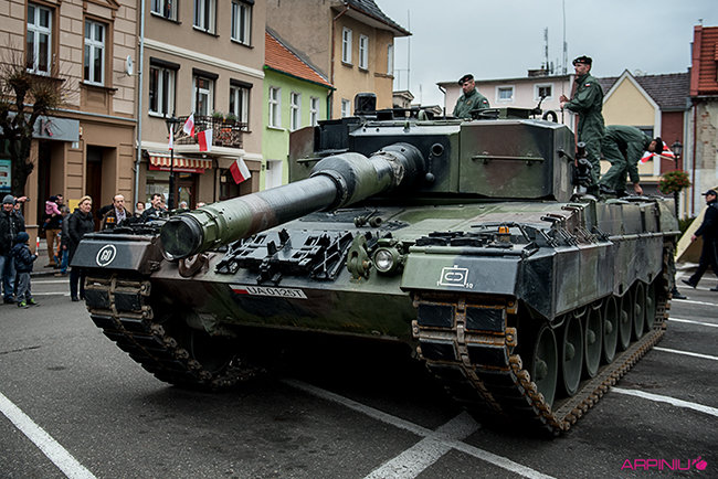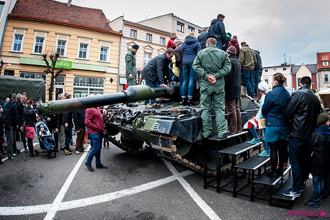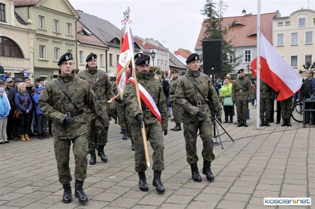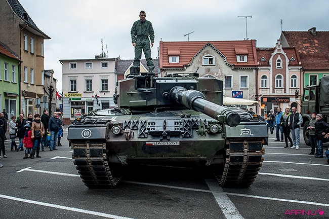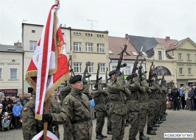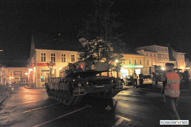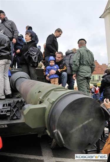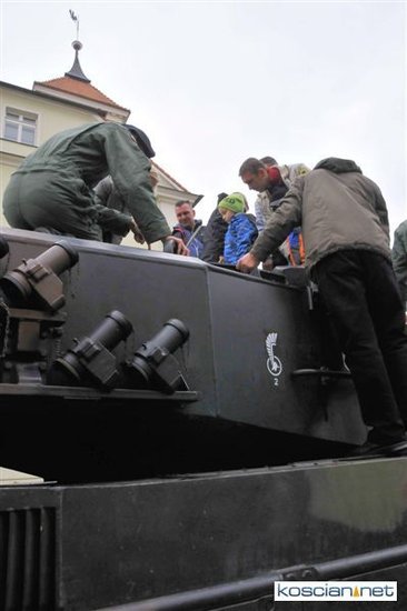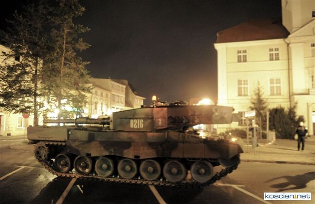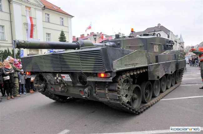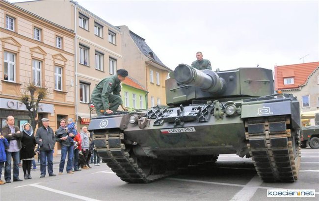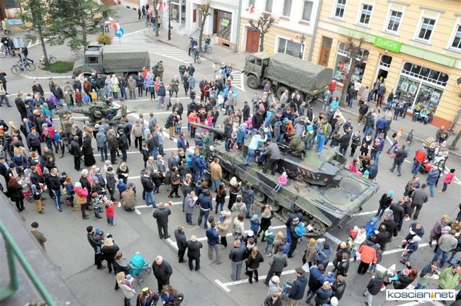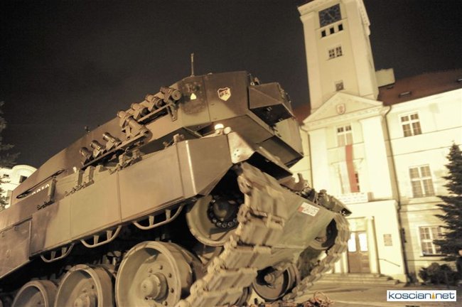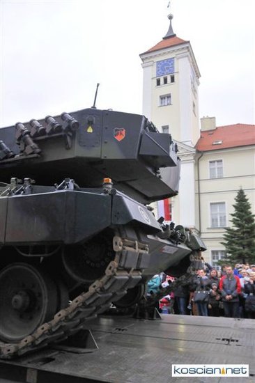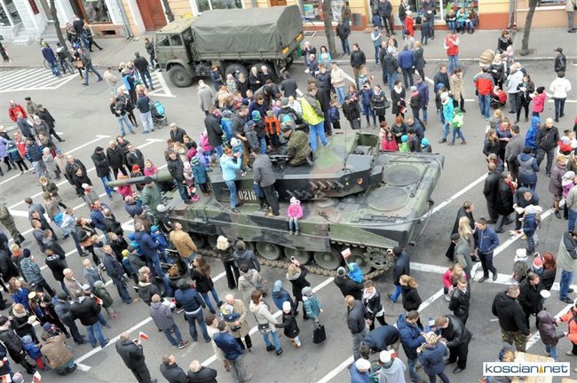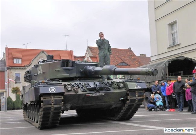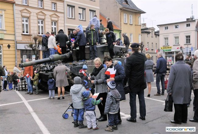 Setkami flag narodowych samorząd Kościana przystroił centrum miasta z okazji Narodowego Święta Niepodległości. Nad ranem na Rynek wjechała największa atrakcja tegorocznego pokazu sprzętu wojskowego – czołg Leopard 2 z 10 Brygady Kawalerii Pancernej w Świętoszowie.