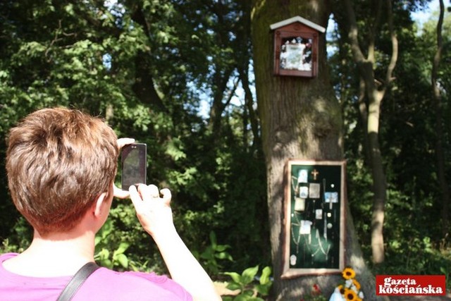 - Cudowne. Wyjątkowe. To taka oaza spokoju. Co tydzień tu przyjadę, kwiaty przywiozę... pomodlę się. Cicho tu... – mówi Stanisław Wychowałek z Kościana. Pani Stanisława z Kokorzyna opowiada, że bywają tu młode pary, bo ślubne bukieciki tu często stoją i komunijne wiązanki z kwiatów. Ona sama z kwiatami jeszcze przez rów do dębu skakała.