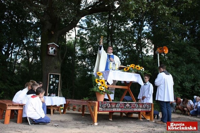 Potem była msza, którą rozpoczęto uroczystym poświęceniem obrazka. Gdy Stanisław Wychowałek wieszał go na dębie, ponad trzydzieści motocykli zaryczało silnikami.