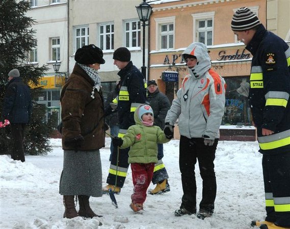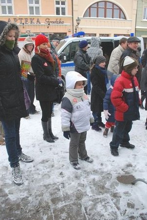W tym roku na ulicach miasta kwestowało aż 90 wolontariuszy. Kościański sztab WOŚP przy Kościańskim Ośrodku Kultury zaczął wielkie granie o godz. 10 na Rynku. Jak co roku nie lada atrakcją dla dzieci były przejażdżki wozem bojowym straży i policyjnym radiowozem. Przez całe przedpołudnie można było także zrobić sobie anielskie zdjęcie za jedyne 2 zł, kupić orkiestrowy kubek za 10 zł lub miniaturkę puszki za 5 zł. Choć nieustannie prószył śnieg, przechodnie zatrzymali się, by podziwiać pokaz siły w wykonaniu zawodników Kobry Jass Kościan. Na zaimprowizowanym pomoście pod namiotem mistrzowie Polski w trójboju siłowym prezentowali się w tzw. martwym ciągu. Kasia Sysa podniosła ciężar 115 kg, Patrycja Jurga – 125 kg, a Sławomir Ceglarek i Tomasz Zakrzewski po 300 kg.