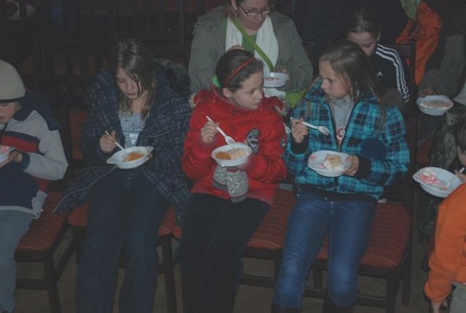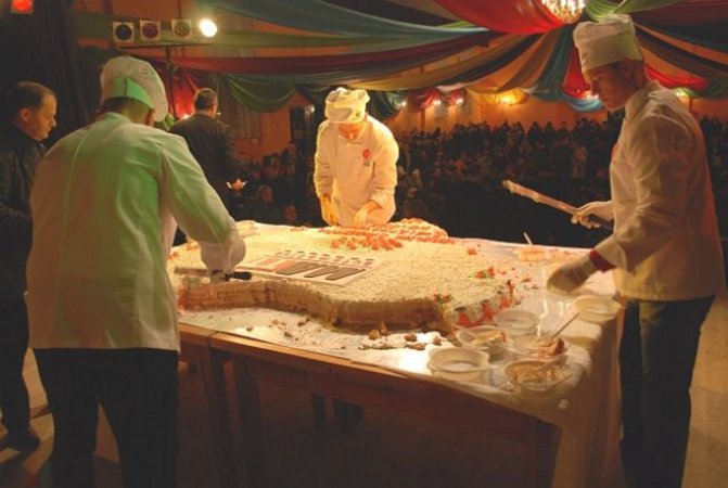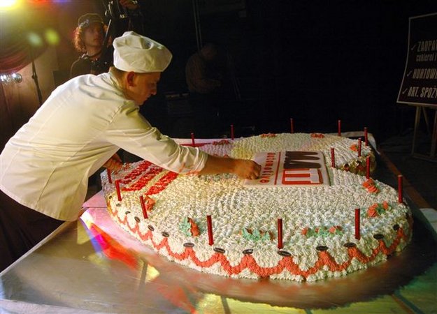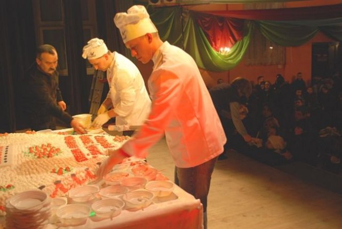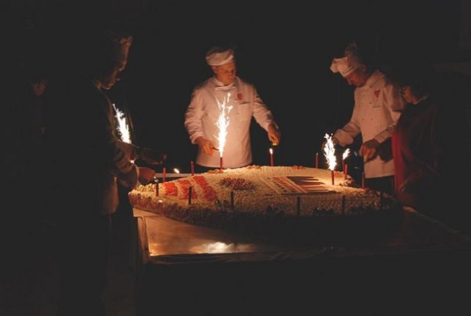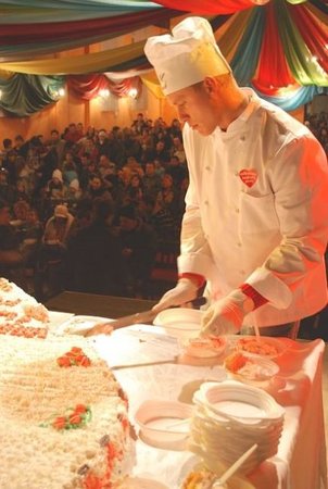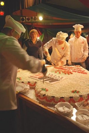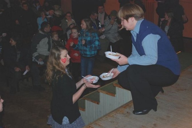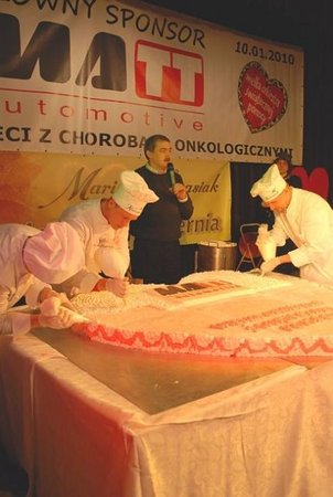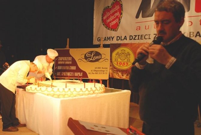 Od godz. 15 w sali widowiskowej KOK odbywały się prezentacje artystyczne przedszkolaków i uczniów z kościańskich szkół, które oklaskiwała liczna publiczność. Nie zabrakło też kościańskiego specjału, czyli olbrzymiego tortu w kształcie serca. Ze względu na złe warunki atmosferyczne, zamiast na plenerowej scenie na placu KOK, cukiernicy z Piekarni – Cukierni Mariana Kurasiaka przygotowywali go w sali. Do wypieku tortu truskawkowego zużyto: 20 kg mąki, 25 kg cukru, 50 litrów kremówki, 20 kg mrożonych truskawek, 200 jajek. W czasie, gdy cukiernicy dekorowali tort, ruszyła licytacja gadżetów. Z początku ciężko było zachęcić kogoś do kupienia czegokolwiek, jednak z czasem kościaniacy rozochocili się i chętniej sięgali do kieszeni. Dopiero po licytacji tort z logo sponsora – firmy MATT R. P. Trączyńscy Sp. J. Kościan - rozdano wśród kościaniaków. Bez wątpienia smakował wszystkim, a kolejka chętnych po dokładkę nie malała. Dzielenie tortu i konsumpcja trwały tak długo, że z opóźnieniem w niebo poszybowały fajerwerki, czyli światełko do nieba.