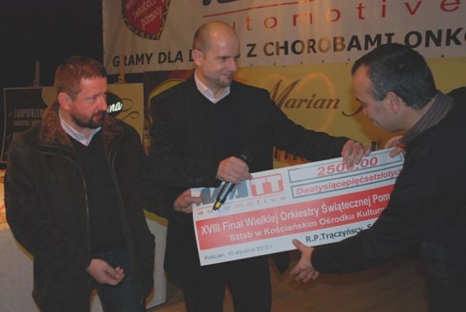 Liczenie pieniędzy zakończono po godz. 22. Choć tym razem nie udało się pobić rekordu, Kościan wpłacił na konto Orkiestry 28 279,51 zł. Wolontariusze zebrali 21 659,90 zł, a tegoroczną rekordzistką została Weronika Kaczmarek (772,48 zł). 2,5 tys. zł przekazała firma Matt, a jej właściciele wręczyli Januszowi Dodotowi, szefowi sztabu symboliczny czek. Licytacje przyniosły 2210 zł, sprzedaż kubków 830 zł, zdjęcia przechodniów ph. ,,I Ty możesz zostać aniołem'' 250 zł, a z dużej skarbony wyjęto 339,21 zł. Wpłynęło też 490,10 zł ze sprzedaży ciasta i napojów podczas turnieju rozgrywanego w hali ,,czwórki''. (kar)