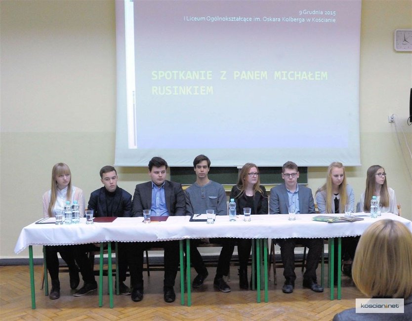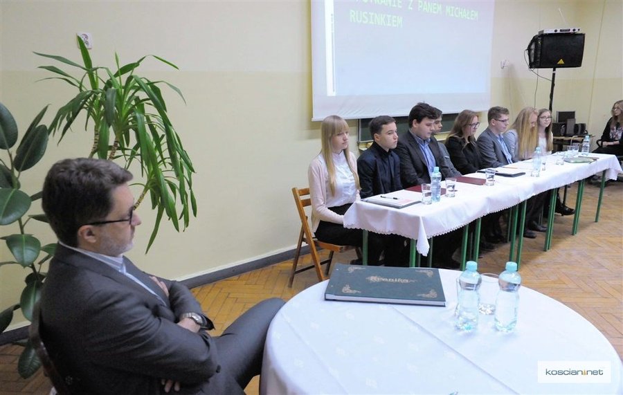 Uczniowie I Liceum Ogólnokształcącego im. Oskara Kolberga spotkali się z Michałem Rusinkiem, pisarzem, tłumaczem, literaturoznawcą, byłym sekretarzem Wisławy Szymborskiej, który gościł nad Obrą w związku z promocją książki ,,Kościan dla dzieci’’.