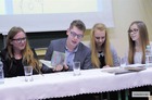 Była mowa o retoryce, tradycjach literackich, Krakowie, procesie twórczym, inspiracjach i pracy z noblistką. Spotkanie rozpoczął i zakończył występ zespołu muzycznego, który wykonał ,,Bracką’’ Grzegorza Turnaua i ,,Dni, których nie znamy’’ Marka Grechuty. Licealiści przypomnieli też fragmenty książki ,,Co ty mówisz?! Magia słów czyli retoryka dla dzieci’’ Michała Rusinka i Anety Załazińskiej. Pytania gościowi zadawała loża ekspertów, w której zasiedli: Ewa Smelkowska z kl. III d, Paweł Linke, Dariusz Piotrowski, Mikołaj Ciseł i Jagoda Pawłowska z kl. III f, Bartosz Smoczyk z kl. II g, Zuzanna Braszak z kl. III g i Wiktoria Licha z kl. II f.