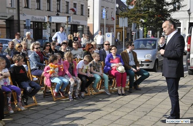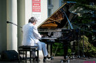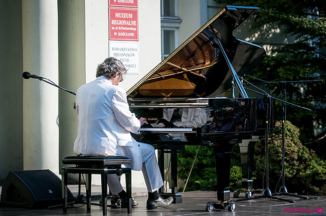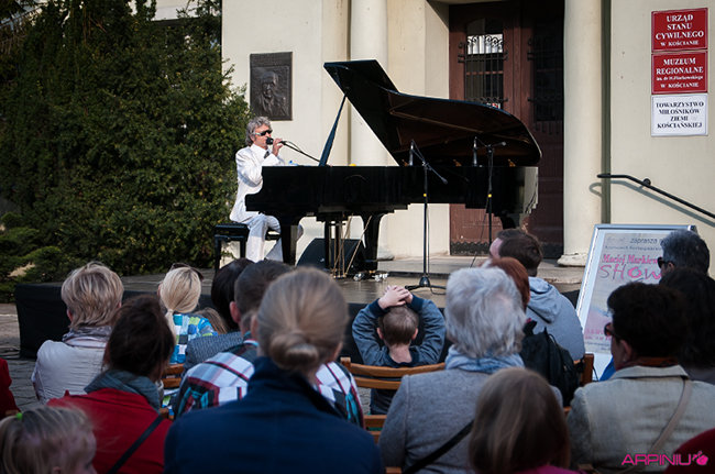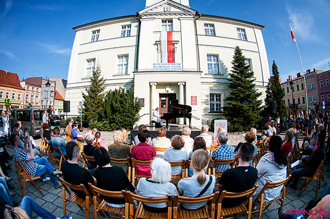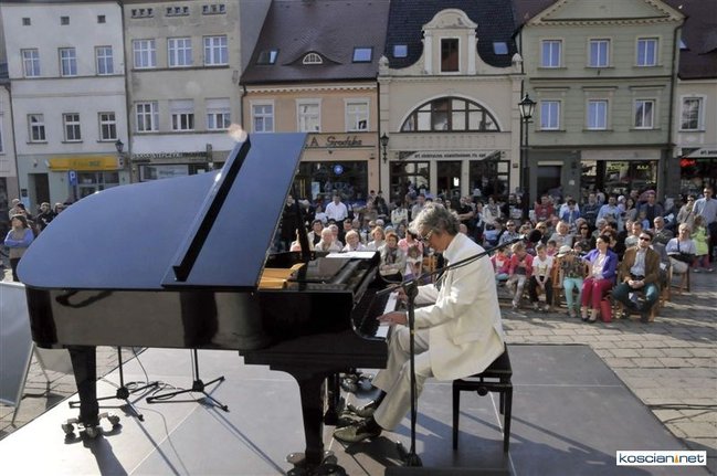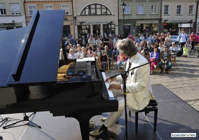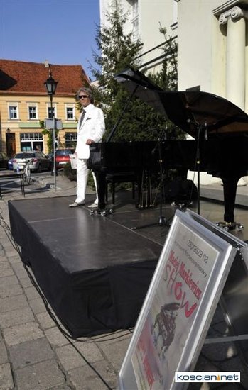 Plenerowy koncert przed kościańskim ratuszem dał w niedziele pianista Maciej Markiewicz.
