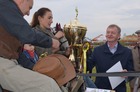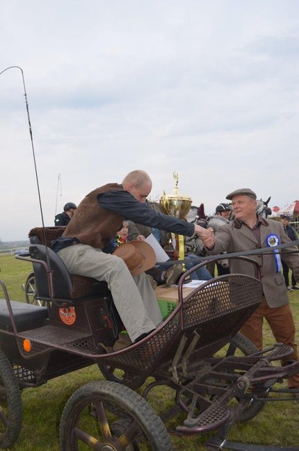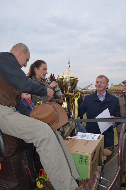 „Gazeta Kościańska” ufundowała puchar dla najpiękniejszego zaprzęgu. Redaktor naczelny Jerzy Wizerkaniuk wręczył go Łukaszowi Hałupce.