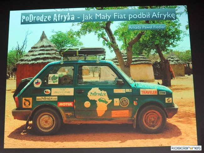 Arkady Paweł Fiedler – wnuk słynnego podróżnika i pisarza – opowiadał dziś w Kościańskim Ośrodku Kultury o swojej wyprawie do Afryki, podczas której przejechał „maluchem” ponad 16 tysięcy kilometrów. Podróż rozpoczęła się 2 sierpnia 2014 r. w Puszczykowie, skąd mały fiat pojechał do Gdyni, gdzie załadowano go na pokład kontenerowca, na którym dopłynął do portu Damietta w Egipcie. Stąd na własnych kołach przejechał całą wschodnią Afrykę aż do Republiki Południowej Afryki. Podróż zakończyła się 12 grudnia 2014 roku na Przylądku Dobrej Nadziei.