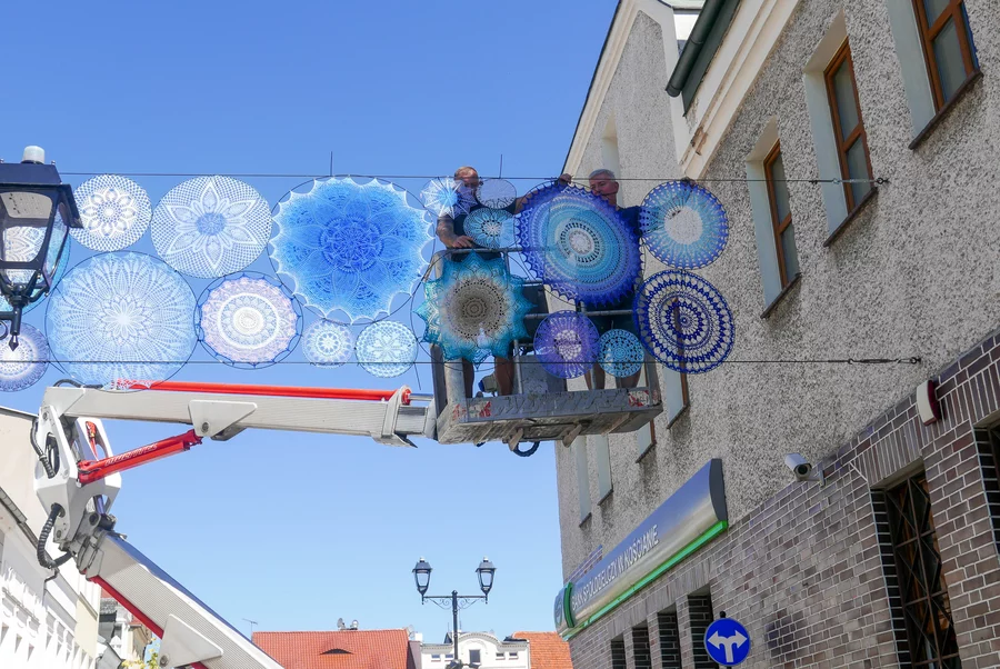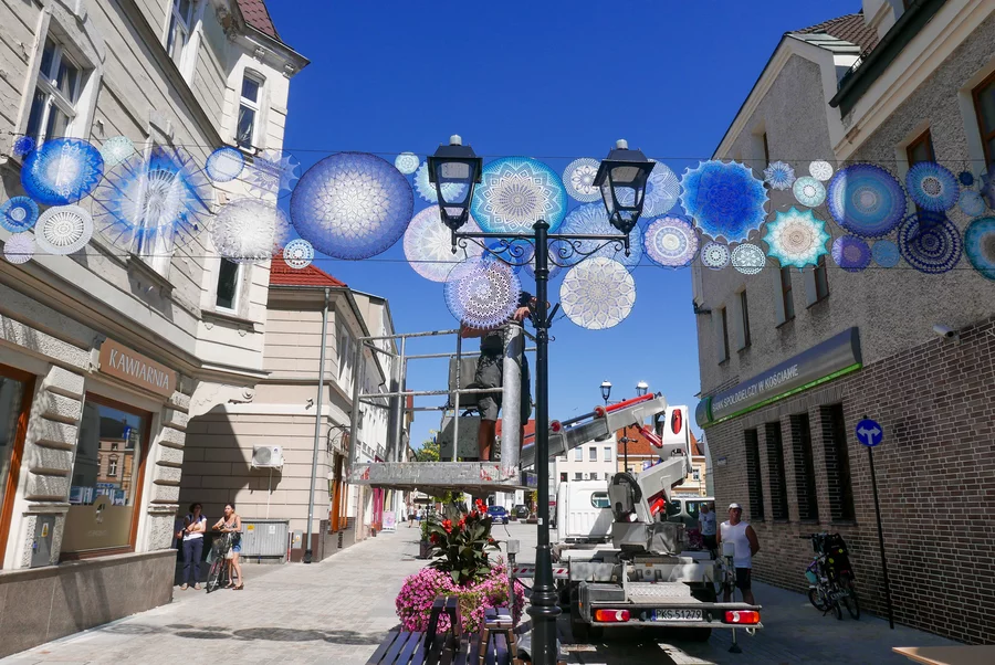 Miłośniczki dziergania zaproponowały miastu nieodpłatne wykonanie instalacji mogącej zdobić deptak. Urząd Miejski zakupił niezbędne materiały, a panie z grupy „Dzierganie w Kościanie” w błyskawicznym tempie wykonały czterdzieści mandali. We wtorek, 13 sierpnia, powieszono je na linkach rozciągniętych nad deptakiem.