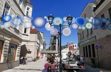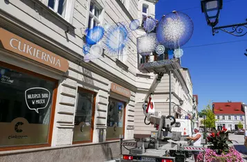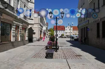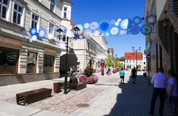 Przy wejściu na deptak od strony Rynku zamontowano barwne mandale z włóczki. To efekt współpracy pań z grupy „Dzierganie w Kościanie” z magistratem.
