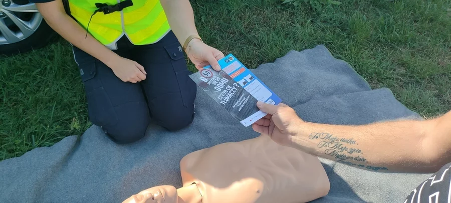 Na kierowców łamiących drobne przepisy ruchu drogowego czekała nietypowa kontrola. Zamiast mandatu otrzymali pouczenie i ćwiczyli udzielanie pierwszej pomocy przedmedycznej.