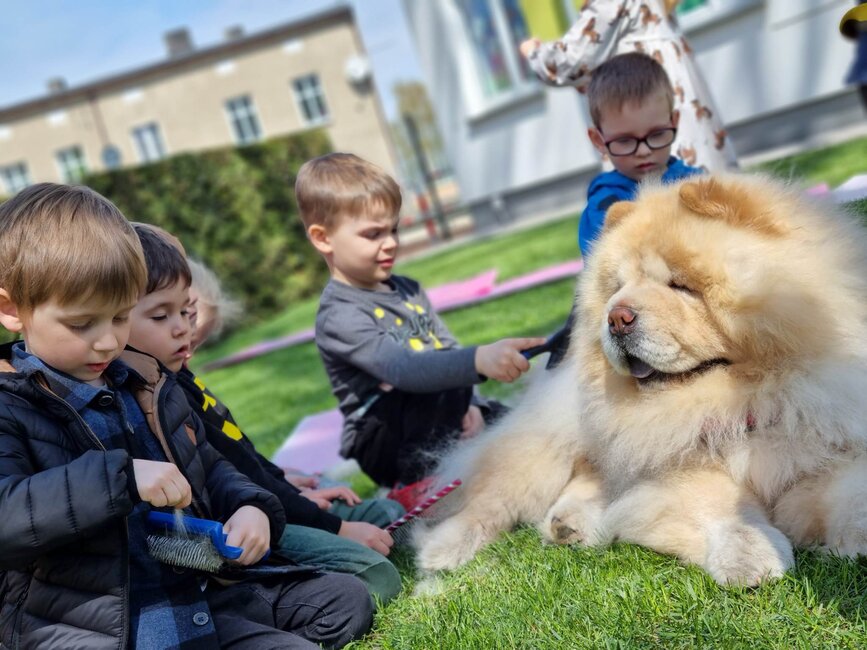 Przedszkolacy z wizytą w psim spa w Starym Gołębinie.