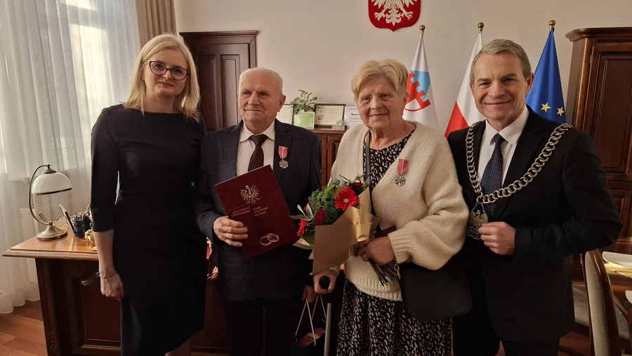 Podczas spotkania w urzędzie, które odbyło się 3 grudnia, prezydenckie medale z rąk burmistrza Sławomira Kaczmarka odebrało pięć par: Elżbieta i Sylwester Karolczak, Halina i Roman Sikora, Daniela i Tadeusz Szenknecht, Janina i Jan Jurga, Elżbieta i Jan Ławniczak.