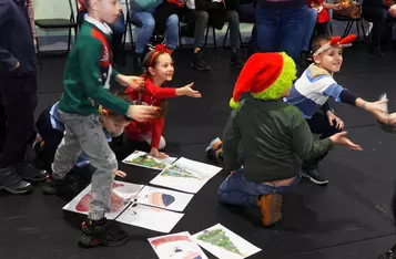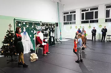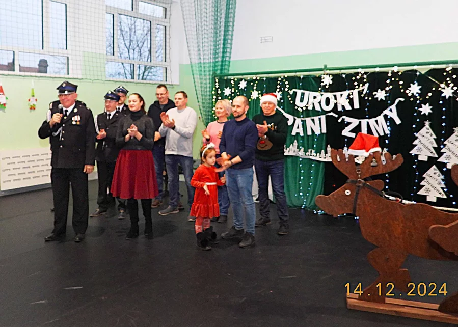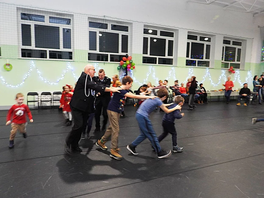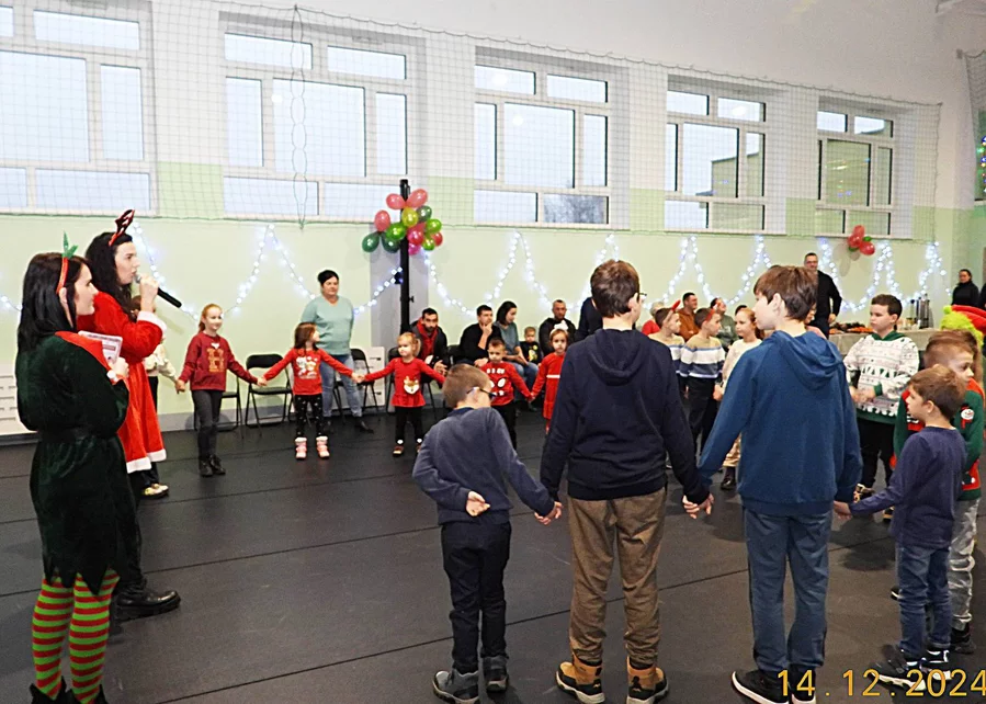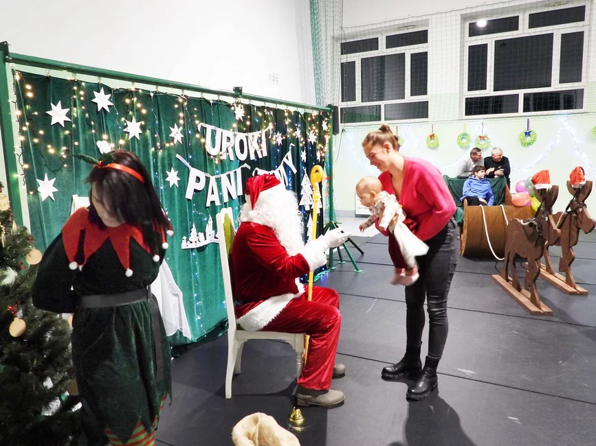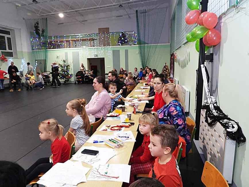 Fotorelacja z mikołajek zorganizowanych przez sołtysa, radę rodziców i miejscową OSP w szkolnej hali sportowej.