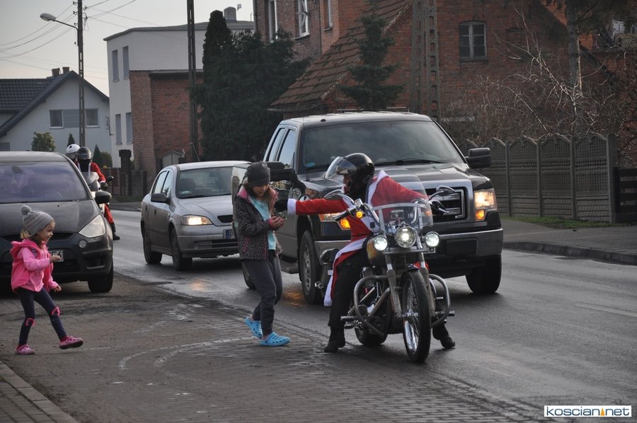 Motocykliści z gminy Śmigiel wraz z gośćmi z ościennych gmin i powiatów wyruszyli na trasę z miejskiego targowiska. Odwiedzili: Śmigiel, Stare Bojanowo, Morownicę, Czacz, Przysiekę Polską, Widziszewo, Nietążkowo, Karśnice, Żegrowo, Bronikowo i Nową Wieś. Po drodze rozdawali dzieciom cukierki. Przejazd zakończyli na śmigielskim rynku, gdzie spotkali mikołajkową ekipę burmistrz Małgorzaty Adamczak.