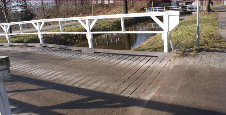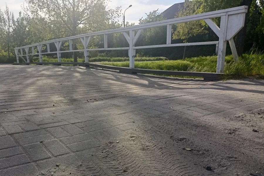 Remontu przepompowni i rewitalizacja Lazienek - Mimo że na czas remontów obok tego mostu usypano specjalny prowizoryczny przejazd to zdarzało się, że po tym moscie przejeżdzał cięzki sprzęt budowlany i teraz są efekty...